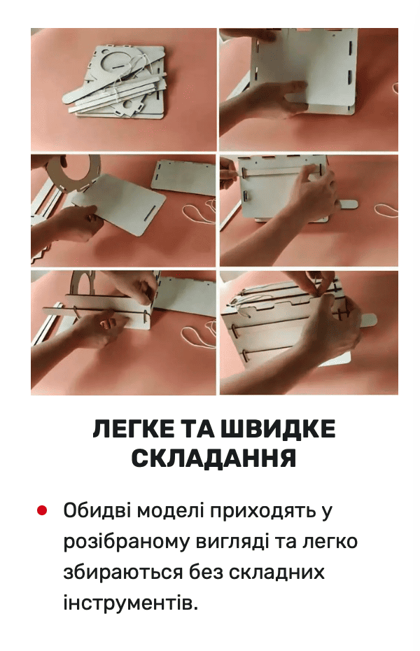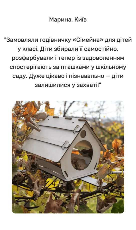 Обидві годівнички постачаються у розібраному вигляді, легко збираються, не потребують спеціальних інструментів і цікаво збирати як самостійно, так і разом із дітьми.