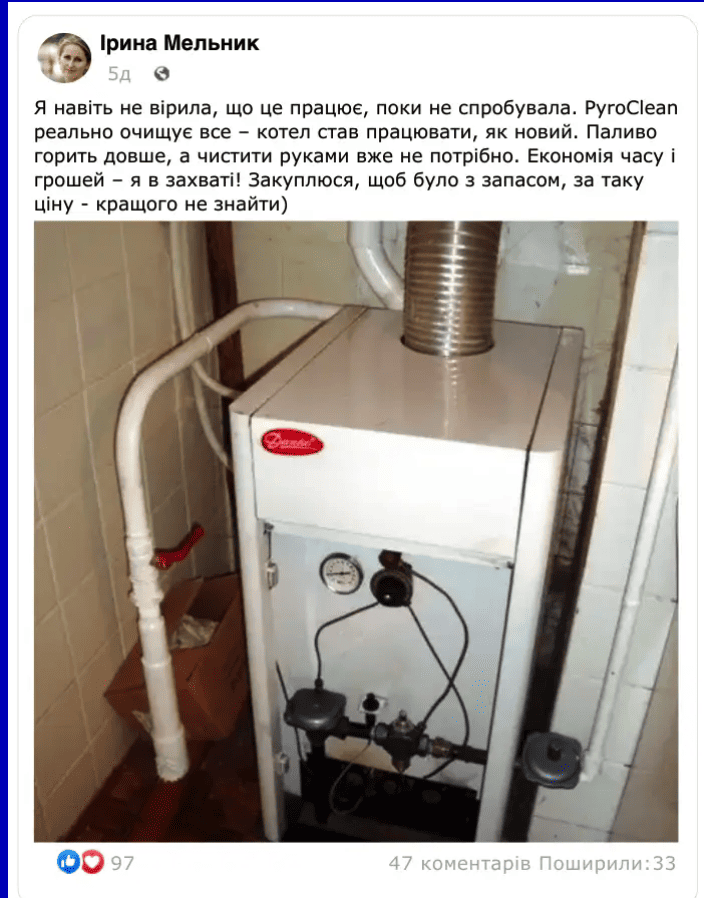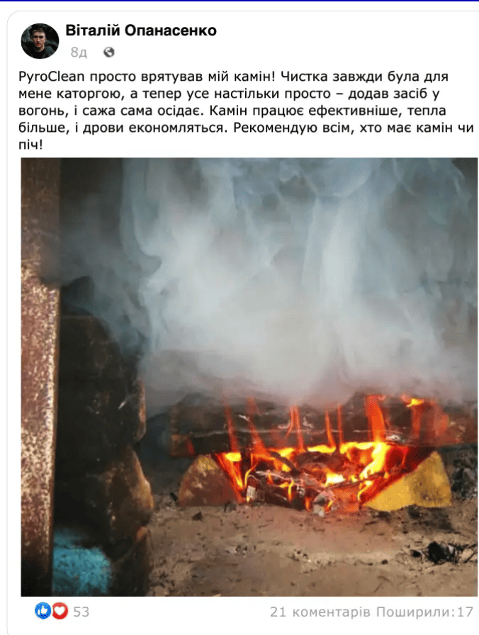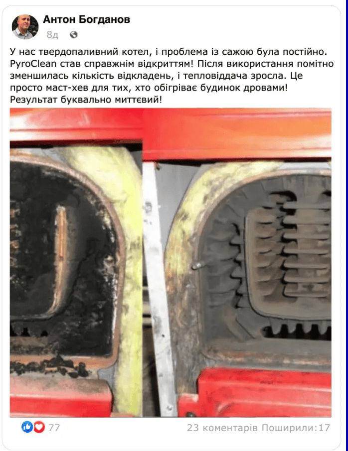 Останнє замовлення: 40 хв томуІнноваційний очисник для печей, котлів та камінів PyroClean